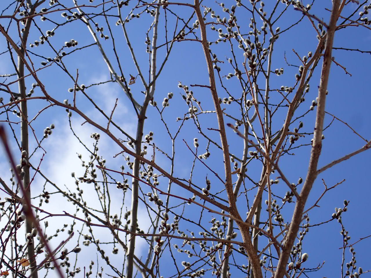 今日は、バッコヤナギが硬い冬芽の皮を破り、モコモコの芽が顔を出していました。このモコモコの芽を見ると、ネコヤナギと思う方も多いかもしれませんが、ヤナギの仲間は、とても多くて見分けるのも難しく、似ているものが沢山あります。そしてオスの木とメスの木が違う(雌雄異株と言います)のも、悩ましいポイントです。このバッコヤナギは、別名ヤマネコヤナギとも呼ばれているそうで、早春に芽吹く印象があります。