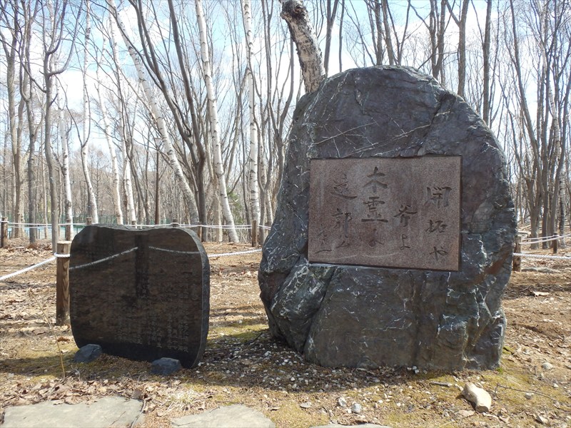 歴史の森には、月寒地域の開拓功労者である吉田善太郎の碑など、様々な石碑が点在しています。