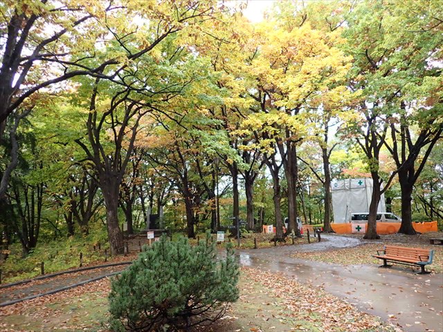 高台野球場向かいにある「散策の森」も、木々が赤や黄色に紅葉して、