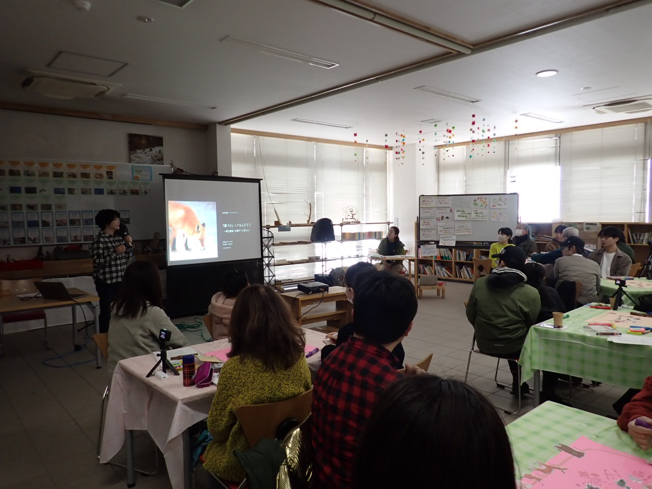 講師は、パークライフカフェでおなじみのキツネの研究者池田貴子先生(北海道大学CoSTEP)、進行は、NPO法人きたのわ代表理事の宮本奏さんが務めました。